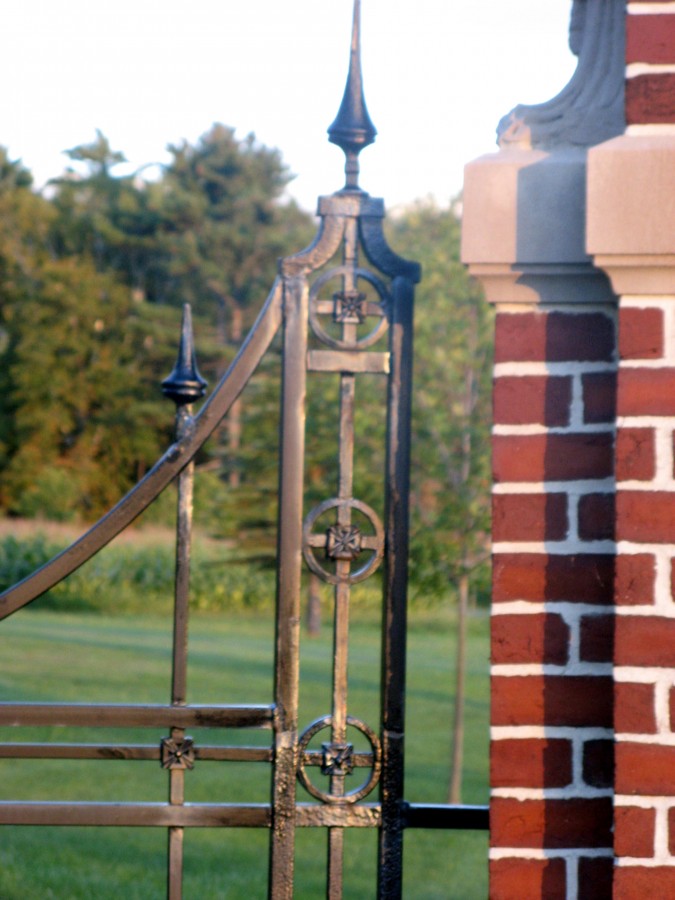 Highlawn Farm is a working dairy farm in Berkshire County. The owners have been spending years restoring the farm to its original condition. The fence and gate were made before welding was common practice. The gate and fence were constructed of parts that were rivited, tenoned and pinned together. Many of the parts were normal repair but some of the pieces we had to cast to be able to replace. In the photos you can see the square collars we had repoduced.